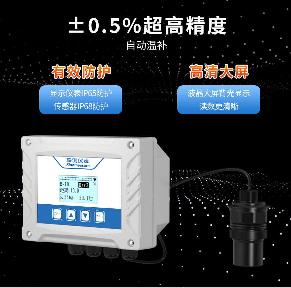 超聲波液位計(測量液位/物位),是一種非接觸式、高可靠性、高性價比、易安裝維護的液位/物位測量儀器。它不需接觸被測量介質就能滿足大部分液位/物位測量要求,是本公司具有完全自主產權的新一代超聲波液位計。